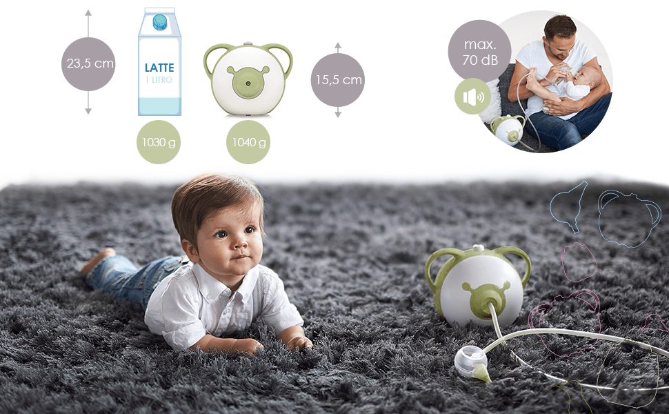 Questo aspiratore nasale elettrico di ottima qualità aiuta a liberare i nasini senza sforzi, rapidamente ed efficacemente. Nosiboo Pro vi servirà per anni, e diventerà il vostro migliore assistente nella camera dei bambini.